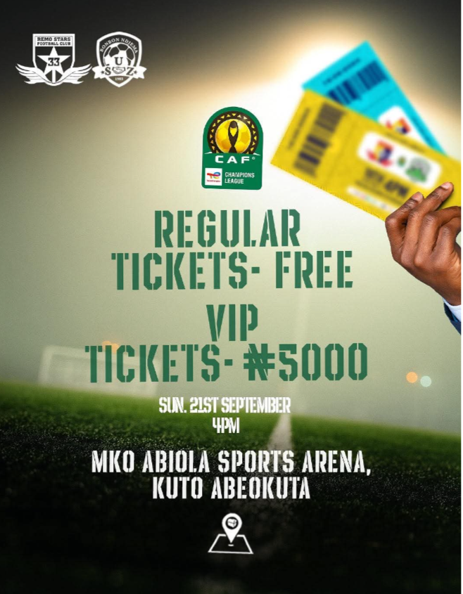 Remo Stars have thrown open the gates of the MKO Abiola International Stadium, Abeokuta, announcing free entry for fans ahead of their CAF Champions League preliminary round showdown with Comoros champions, US Zilmadjou.
