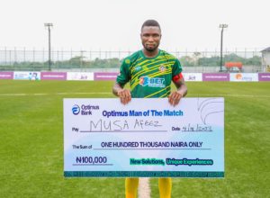 Kwara United defender, Musa Afeez gained the Man of the match award on the finish of the ultimate whistle. He additionally gained 100,000 courtesy of Optimus Financial institution.