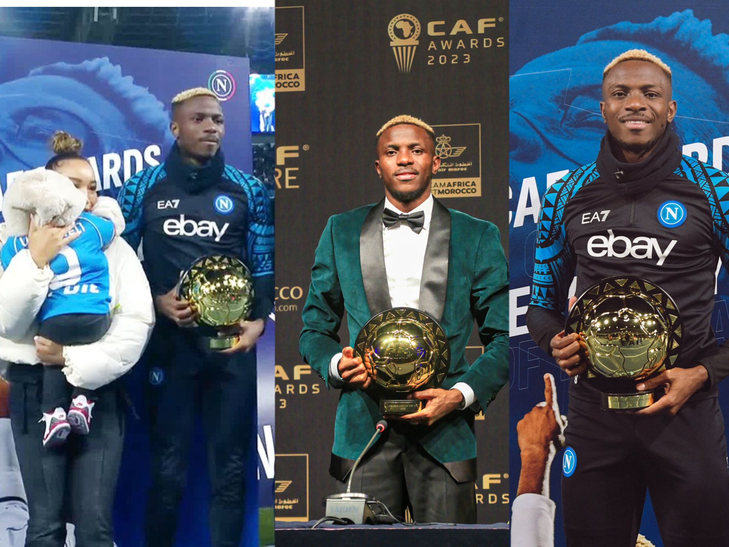 The 24-year-old accompanied by his girlfriend and daughter took a photo while presenting the prestigious CAF POTY award as Napoli welcomed Cagliari to the Diego Maradona Stadium on Saturday night.